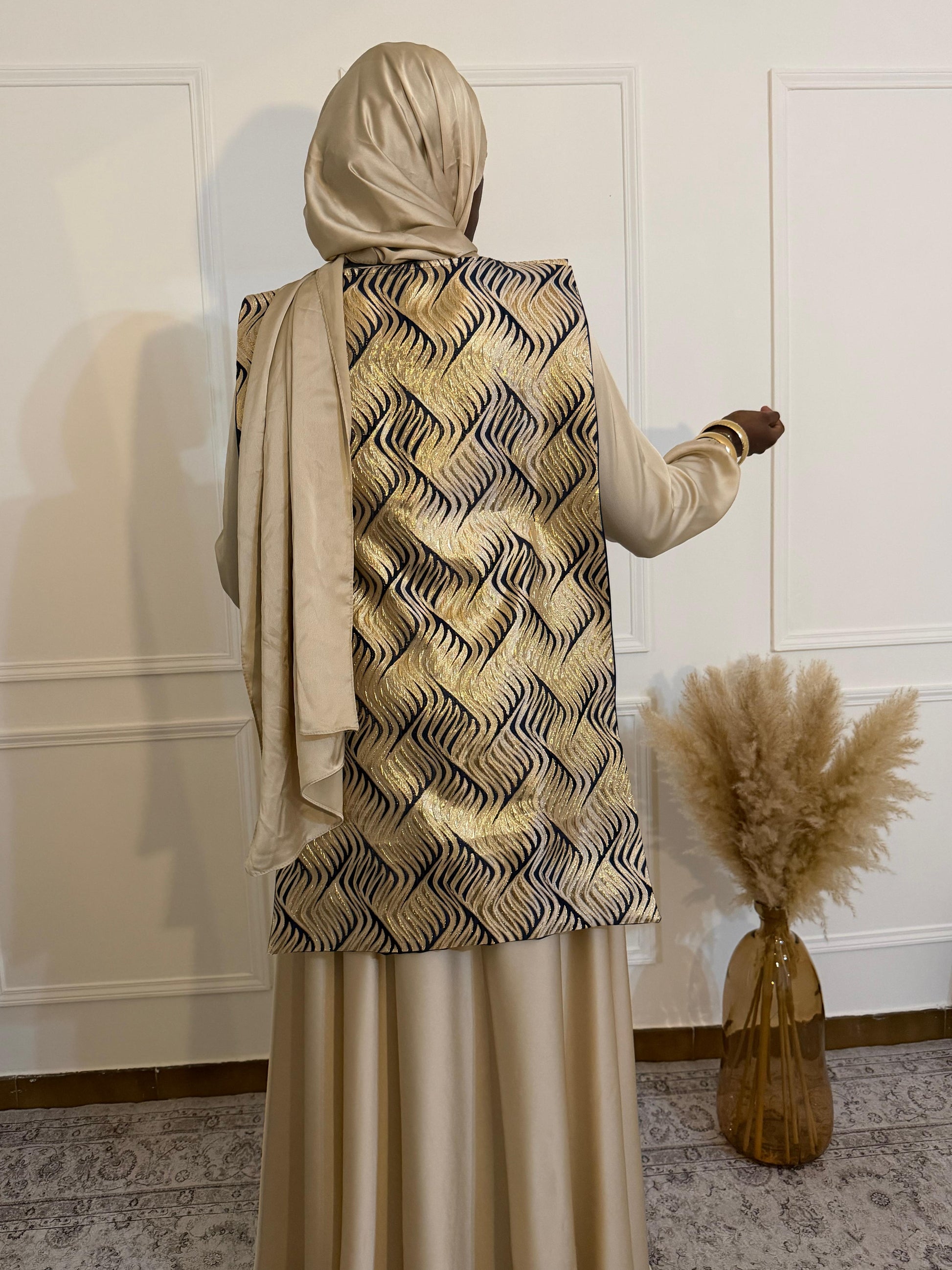Facile a porter, elle se superpose harmonieusement sur une robe, abaya ou un haut